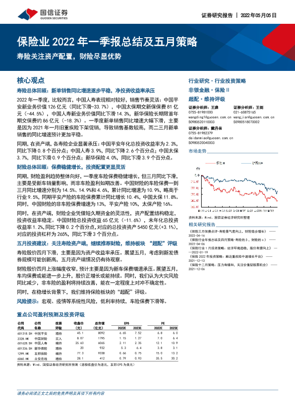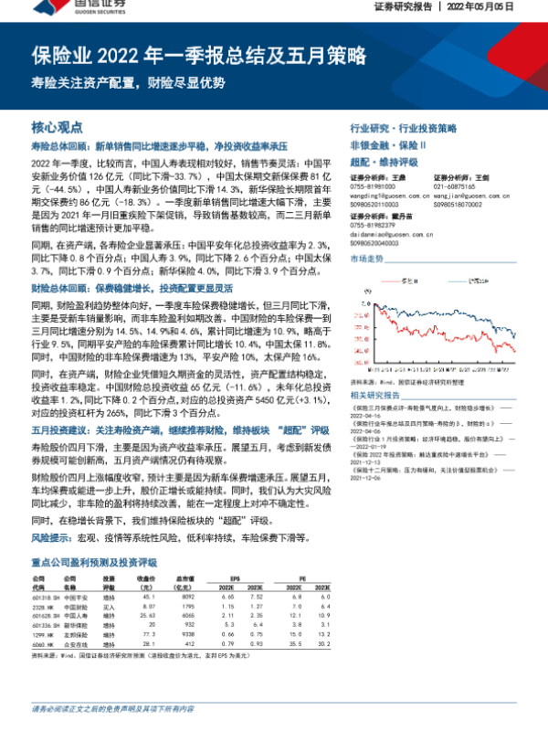 【国信证券】【20220505】保险业2022年一季报总结及五月策略-5页