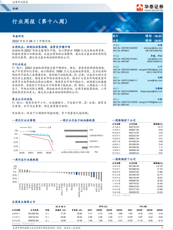 【华泰证券】【20220508】金融行业周报(第十八周)-24页