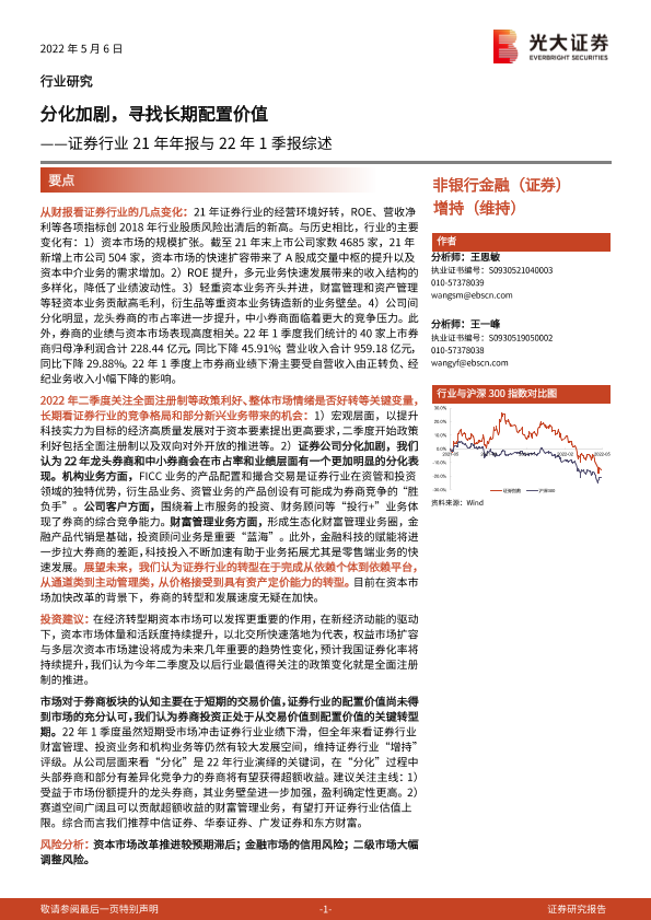 【光大证券】【20220506】证券行业21年年报与22年1季报综述:分化加剧,寻找长期配置价值-18页
