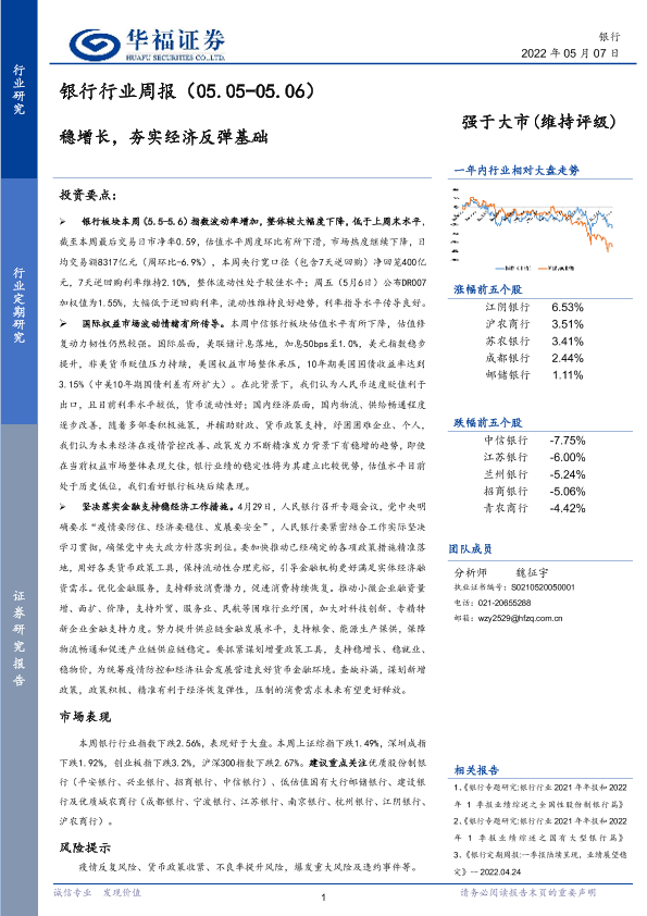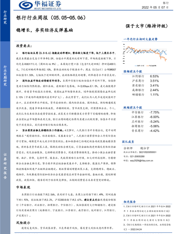 【华福证券】【20220507】银行行业周报:稳增长,夯实经济反弹基础-14页