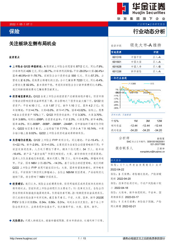 【华金证券】【20220507】保险行业动态分析:关注板块左侧布局机会-15页