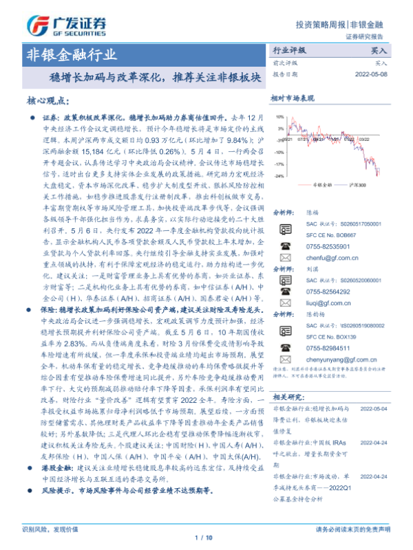 【广发证券】【20220508】非银金融行业:稳增长加码与改革深化,推荐关注非银板块-10页