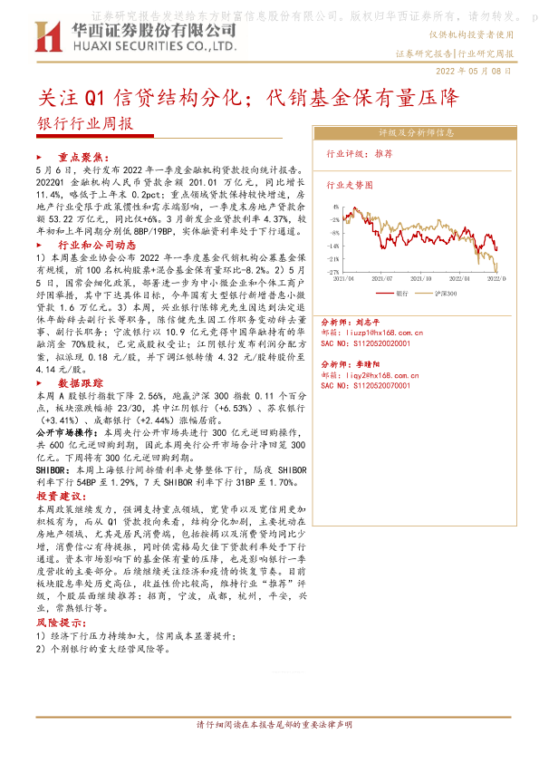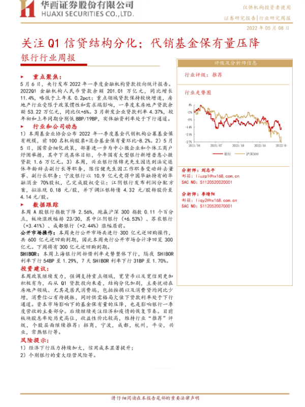 【华西证券】【20220508】银行行业周报:关注Q1信贷结构分化;代销基金保有量压降-8页