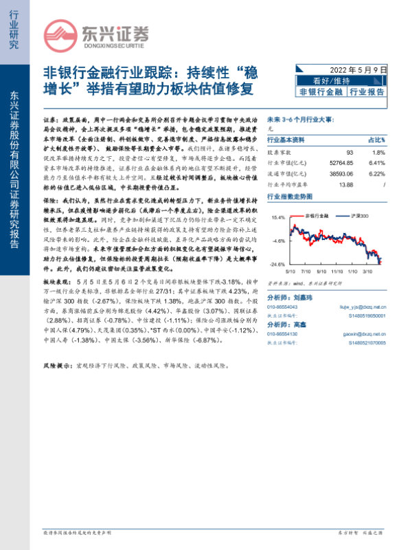 【东兴证券】【20220509】非银行金融行业跟踪:持续性“稳增长”举措有望助力板块估值修复-10页