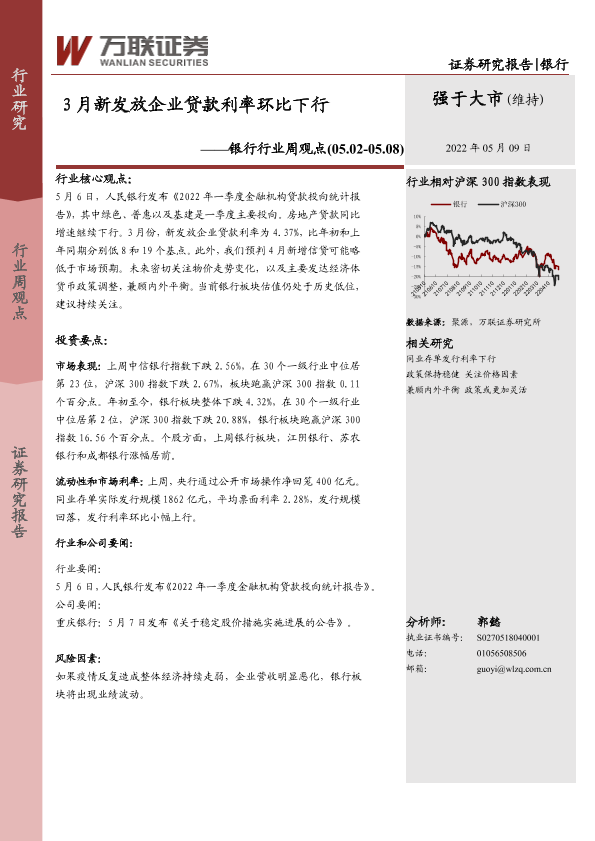 【万联证券】【20220509】3月新发放企业贷款利率环比下行-6页