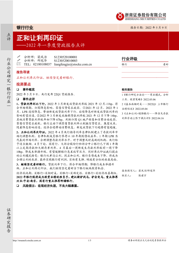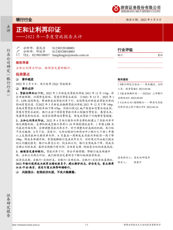 【浙商证券】【20220509】银行业2022年一季度货政报告点评:正和让利再印证-3页