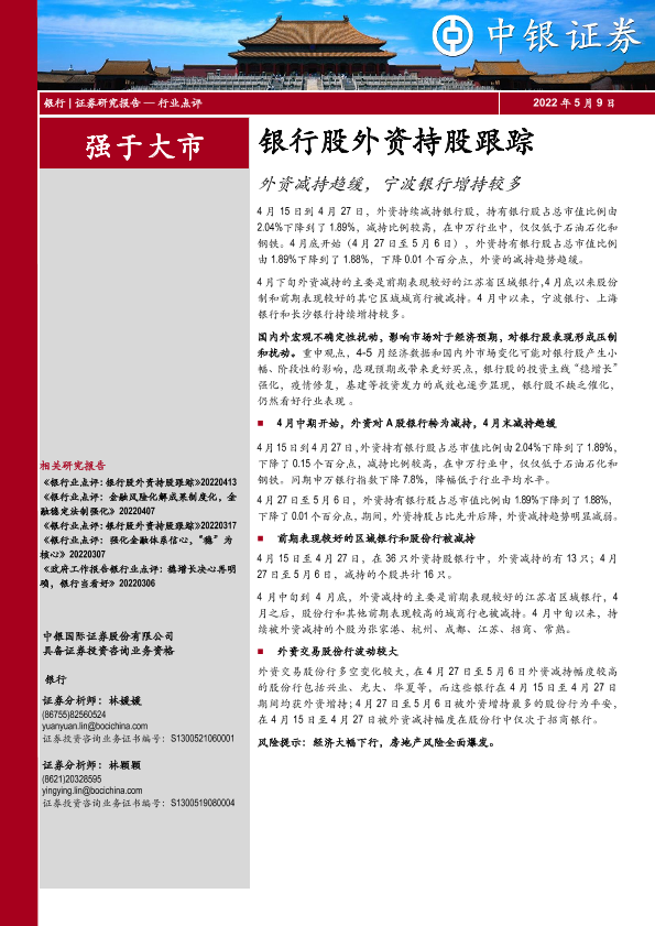 【中银证券】【20220509】银行业:银行股外资持股跟踪-14页