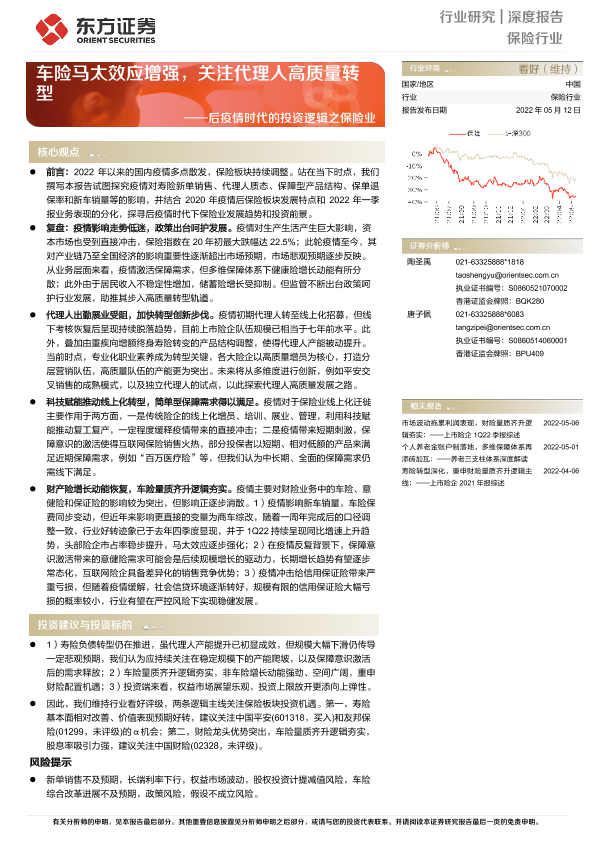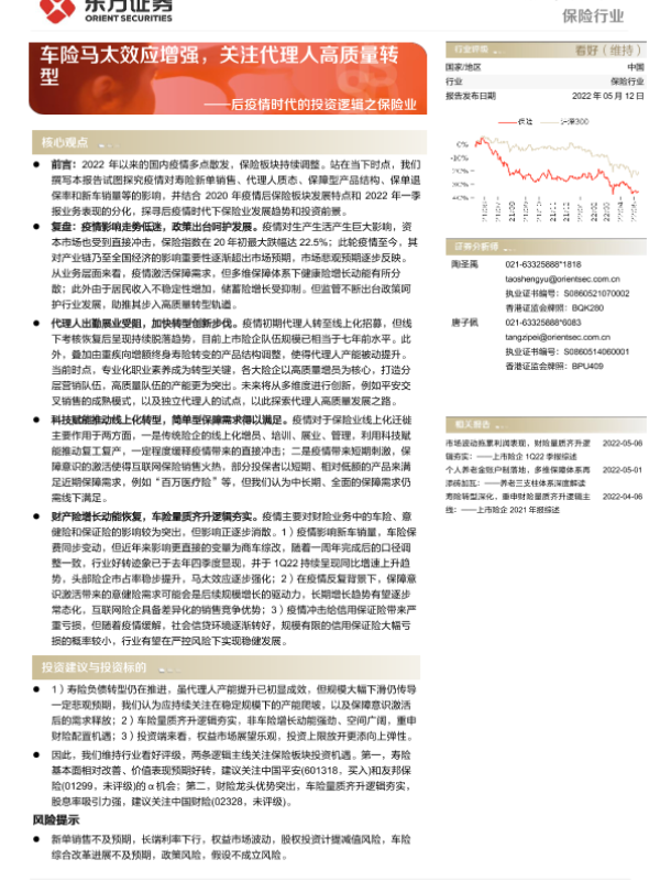 【东方证券】【20220512】后疫情时代的投资逻辑之保险业:车险马太效应增强,关注代理人高质量转型-19页