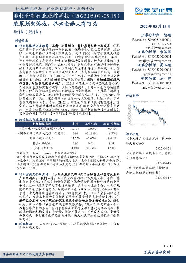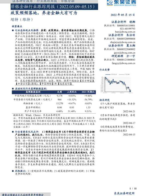 【东吴证券】【20220515】非银金融行业跟踪周报:政策频频落地,养老金融大有可为-11页