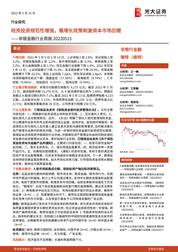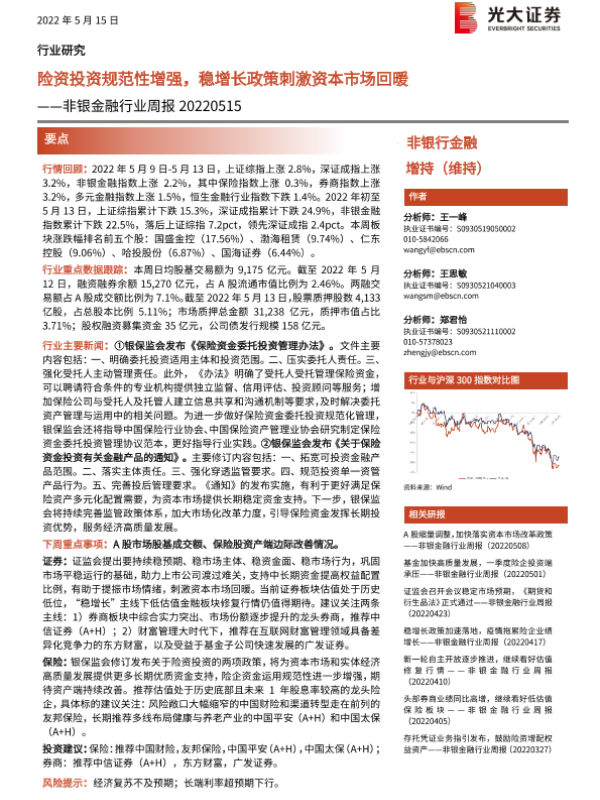 【光大证券】【20220515】险资投资规范性增强,稳增长政策刺激资本市场回暖-7页