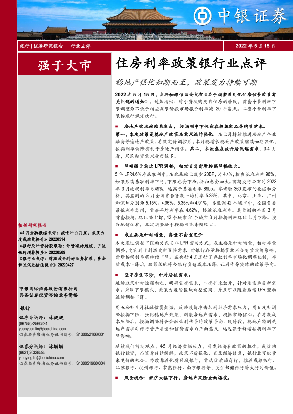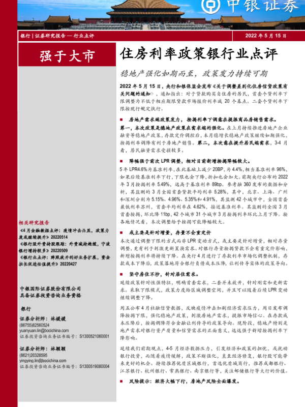 【中银证券】【20220515】住房利率政策银行业点评:稳地产强化如期而至,政策发力持续可期-4页