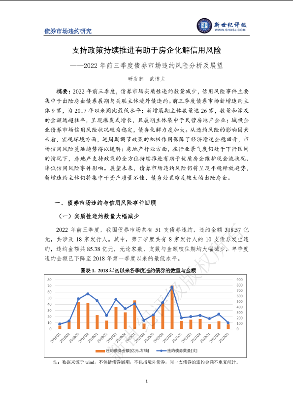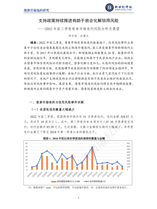 【新世纪评级】【20220101】支持政策持续推进有助于房企化解信用风险——2022年前三季度债券市场违约风险分析及展望-14页