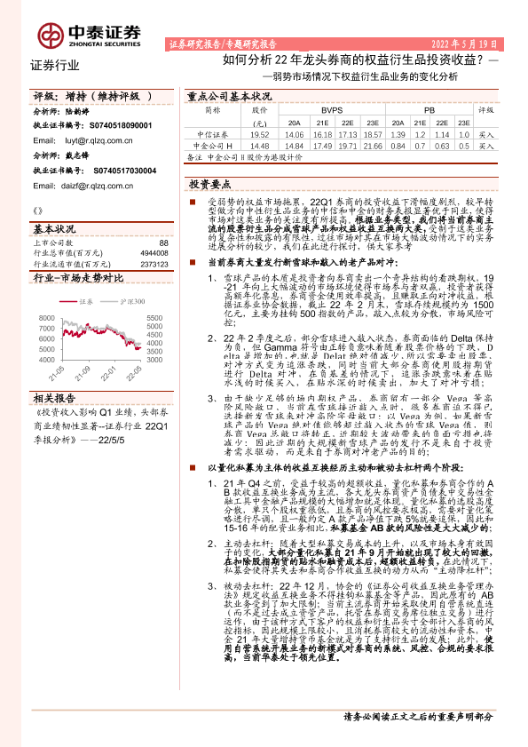 【中泰证券】【20220519】弱势市场情况下权益衍生品业务的变化分析-如何分析22年龙头券商的权益衍生品投资收益-12页