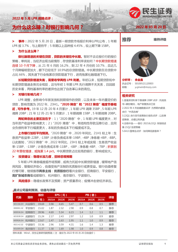【民生证券】【20220520】2022年5月LPR调降点评:为什么这么降?对银行影响几何?-4页