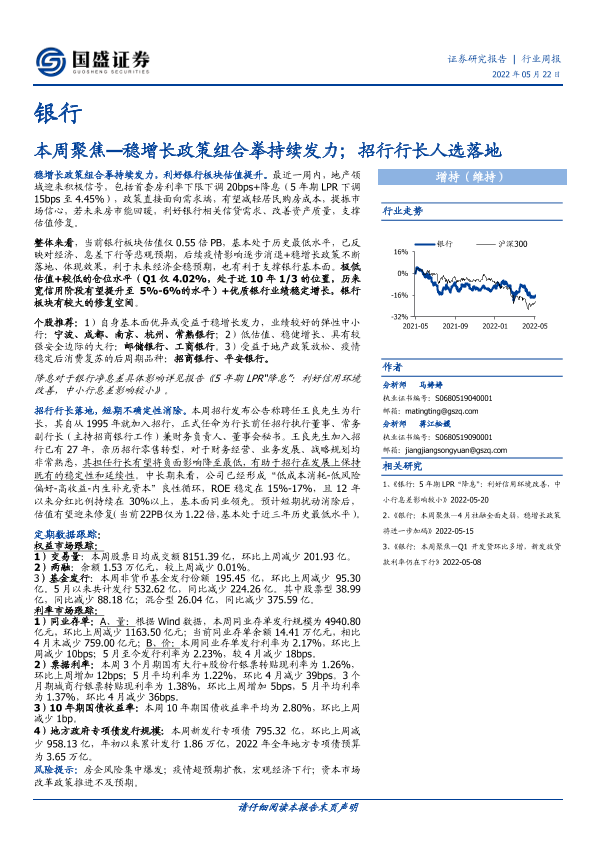 【国盛证券】【20220522】银行本周聚焦—稳增长政策组合拳持续发力;招行行长人选落地-10页