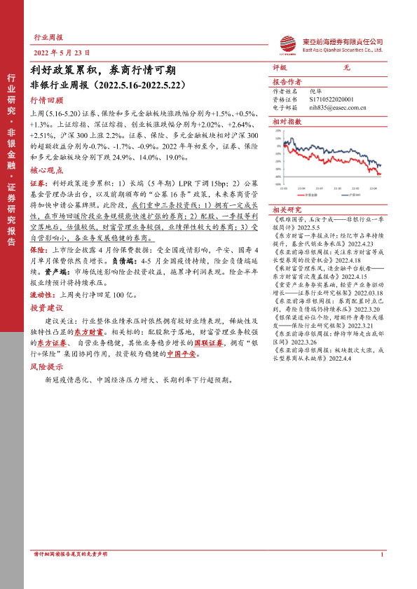 【东亚前海证券】【20220523】非银行业周报:利好政策累积,券商行情可期-9页