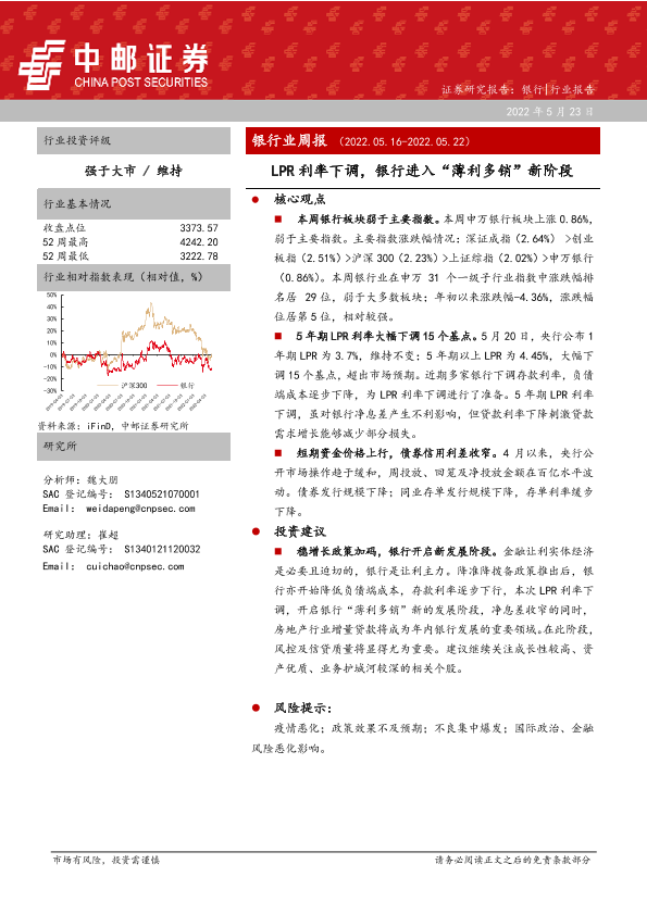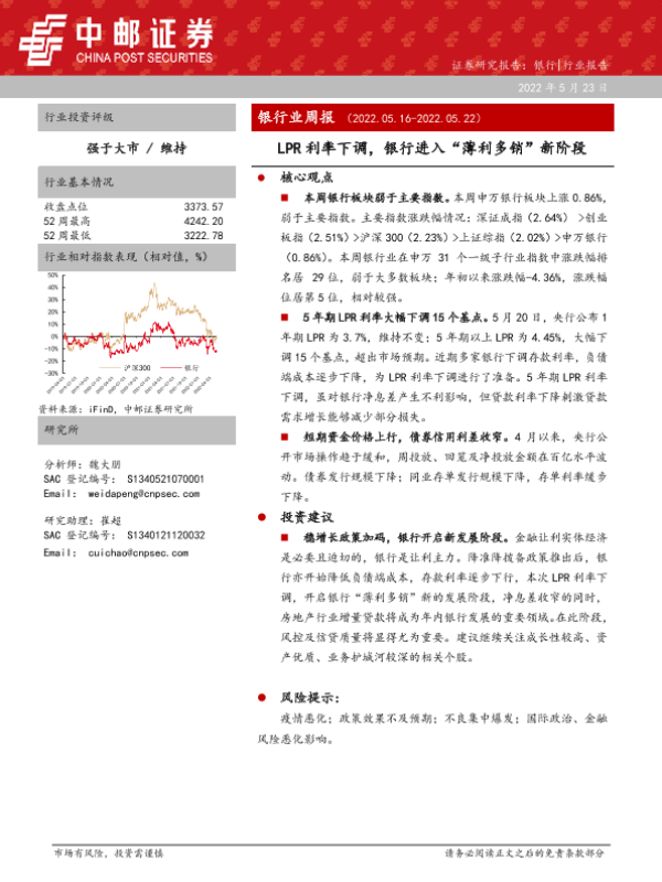 【中邮证券】【20220523】银行业周报:LPR利率下调,银行进入“薄利多销”新阶段-14页