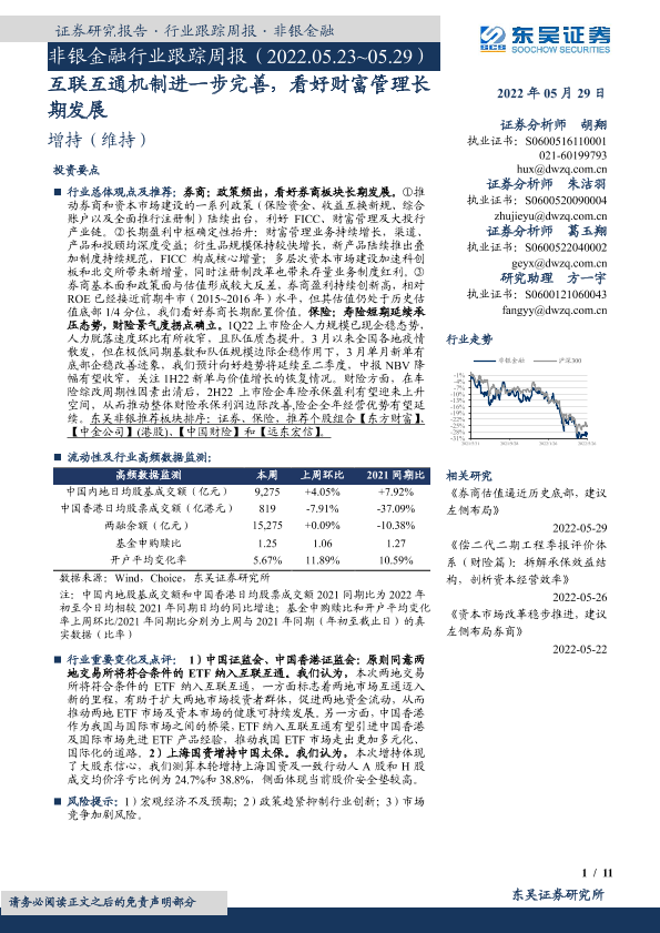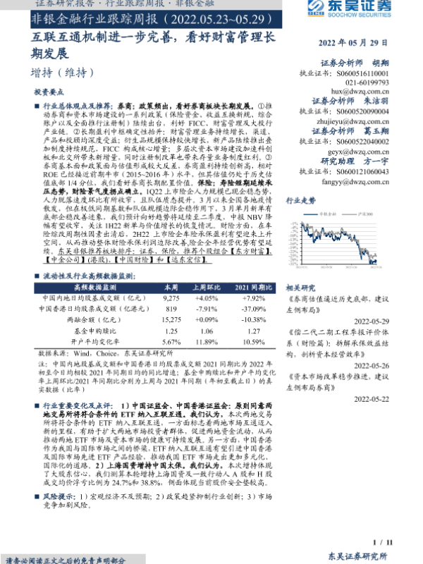 【东吴证券】【20220529】非银金融行业跟踪周报:互联互通机制进一步完善,看好财富管理长期发展-11页
