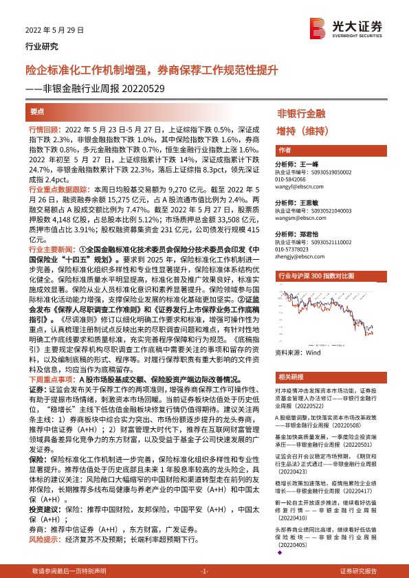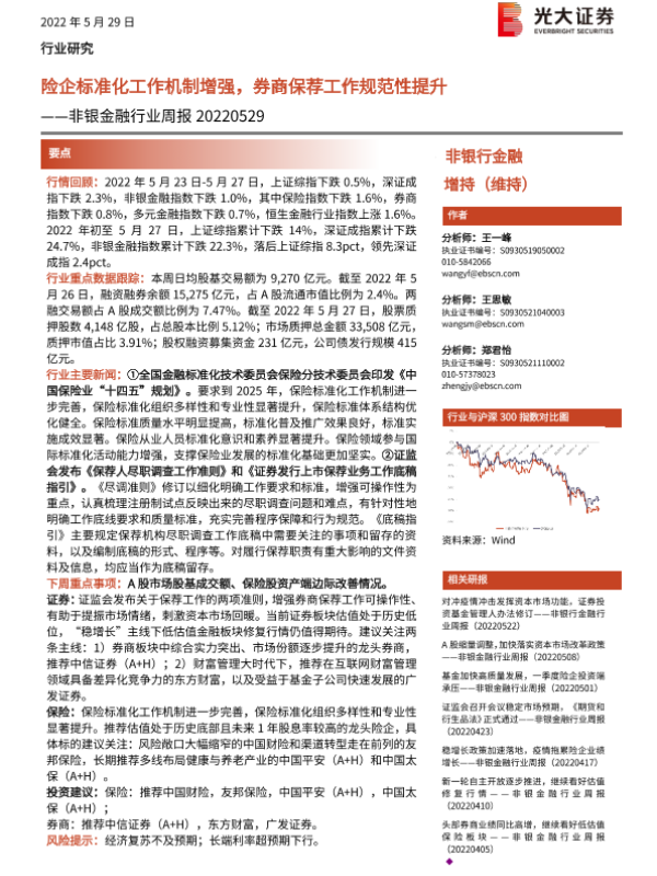 【光大证券】【20220529】非银金融行业周报:险企标准化工作机制增强,券商保荐工作规范性提升-7页