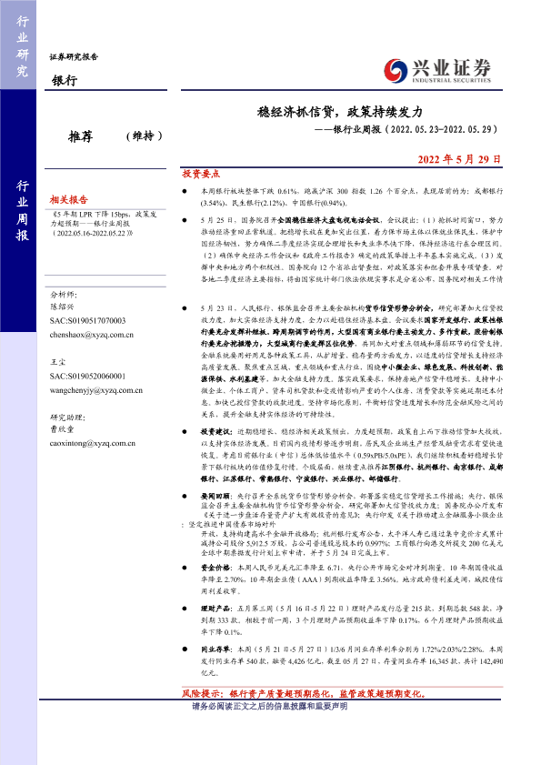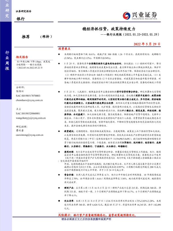 【兴业证券】【20220529】稳经济抓信贷,政策持续发力-15页