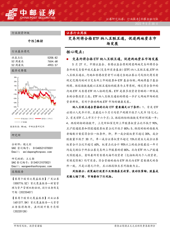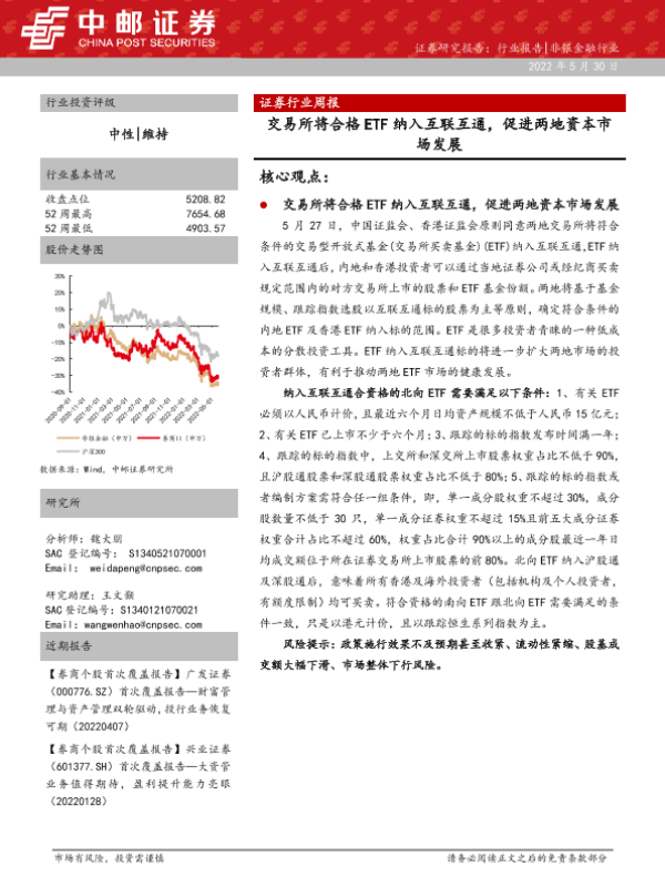 【中邮证券】【20220530】证券行业周报:交易所将合格ETF纳入互联互通,促进两地资本市场发展-11页