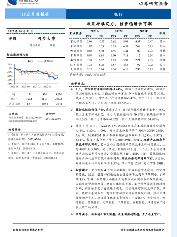 【财信证券】【20220601】银行行业月度报告:政策持续发力,信贷稳增长可期-8页