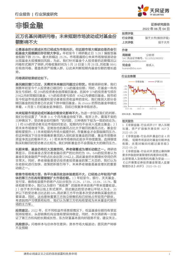 【天风证券】【20220604】非银金融近万名基民调研问卷:未来短期市场波动或对基金份额影响不大-17页