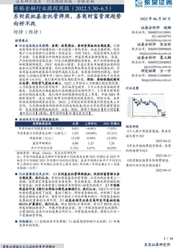 【东吴证券】【20220605】非银金融行业跟踪周报:东财获批基金托管牌照,券商财富管理趋势向好不改-14页