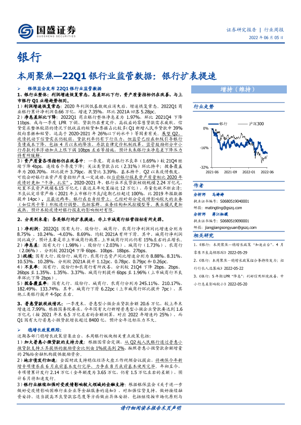 【国盛证券】【20220605】银行本周聚焦—22Q1银行业监管数据:银行扩表提速-14页