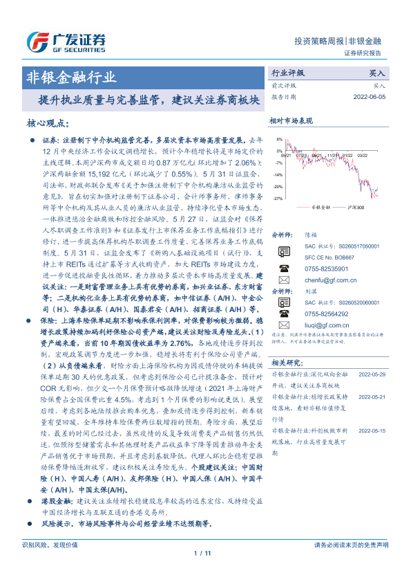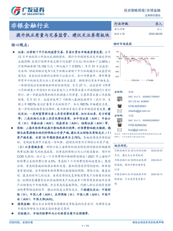 【广发证券】【20220605】非银金融行业投资策略周报:提升执业质量与完善监管-11页