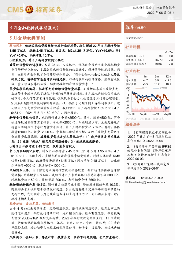 【海通证券】【20220605】银行5月金融数据预测:5月金融数据改善明显么?-4页