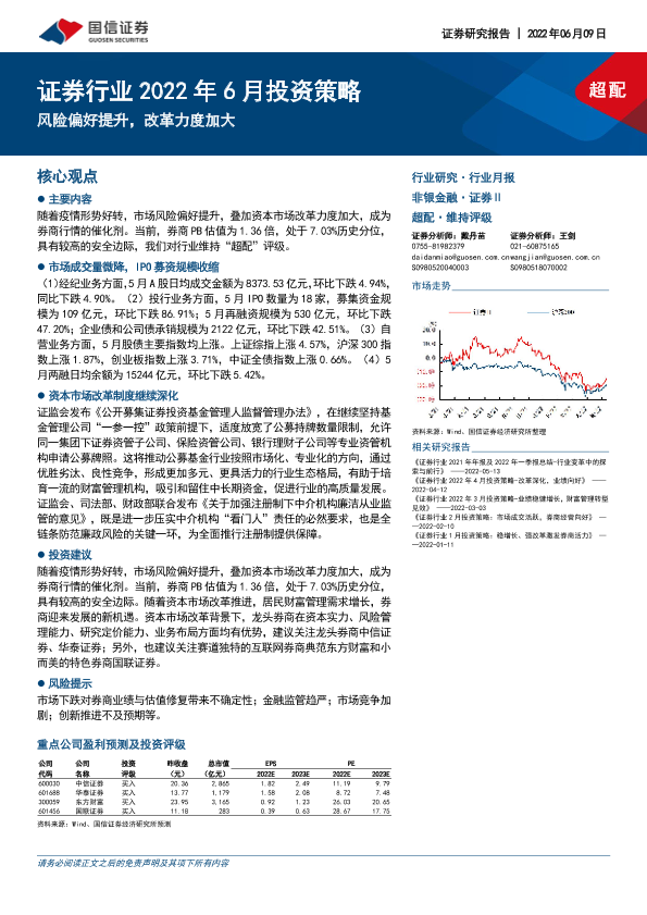 【国信证券】【20220609】证券行业2022年6月投资策略:风险偏好提升,改革力度加大-8页