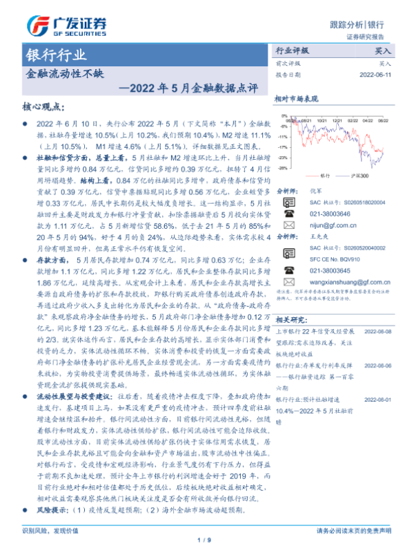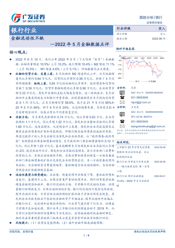 【广发证券】【20220611】2022年5月金融数据点评-金融流动性不缺-9页