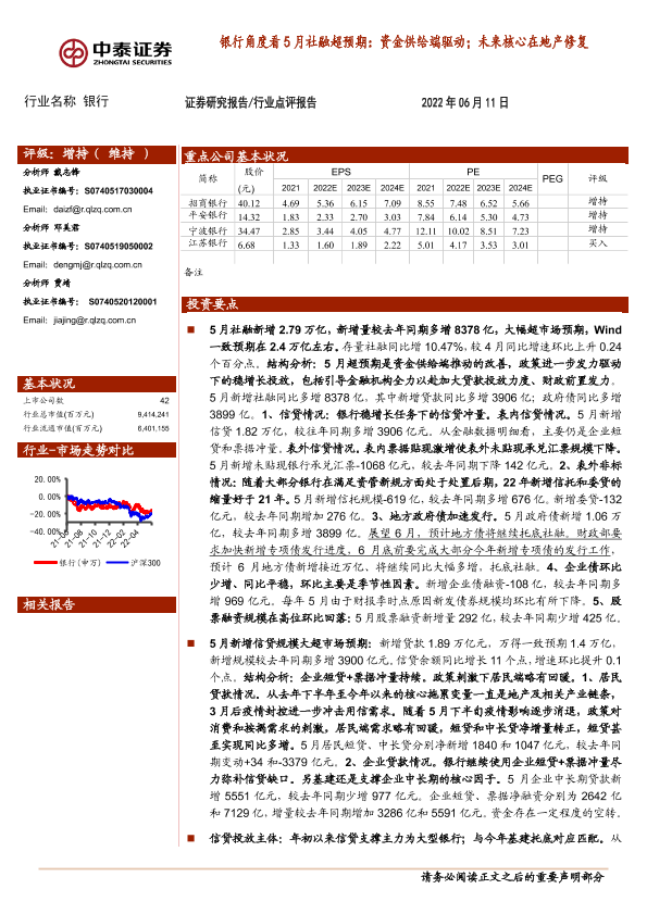 【中泰证券】【20220611】银行角度看5月社融超预期:资金供给端驱动;未来核心在地产修复-13页