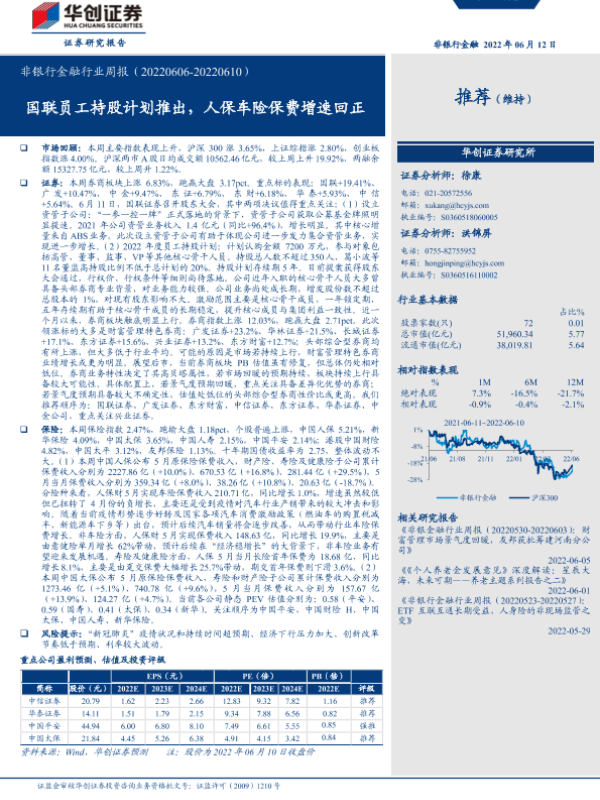 【华创证券】【20220612】非银行金融行业周报:国联员工持股计划推出,人保车险保费增速回正-17页