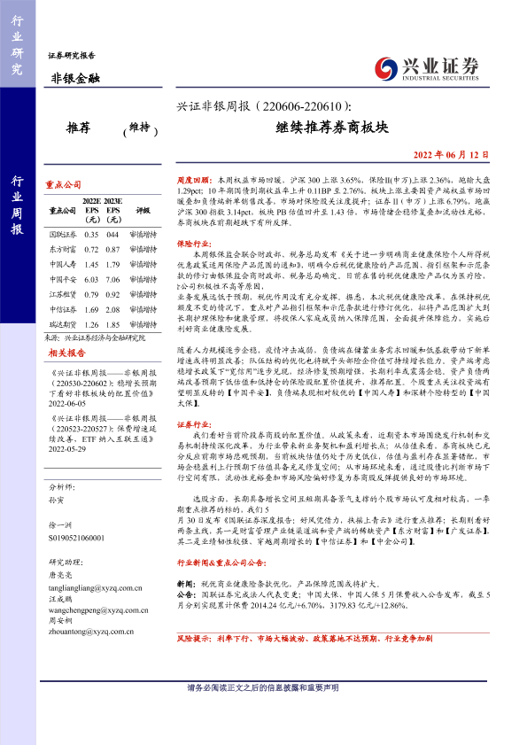 【兴业证券】【20220612】继续推荐券商板块-15页