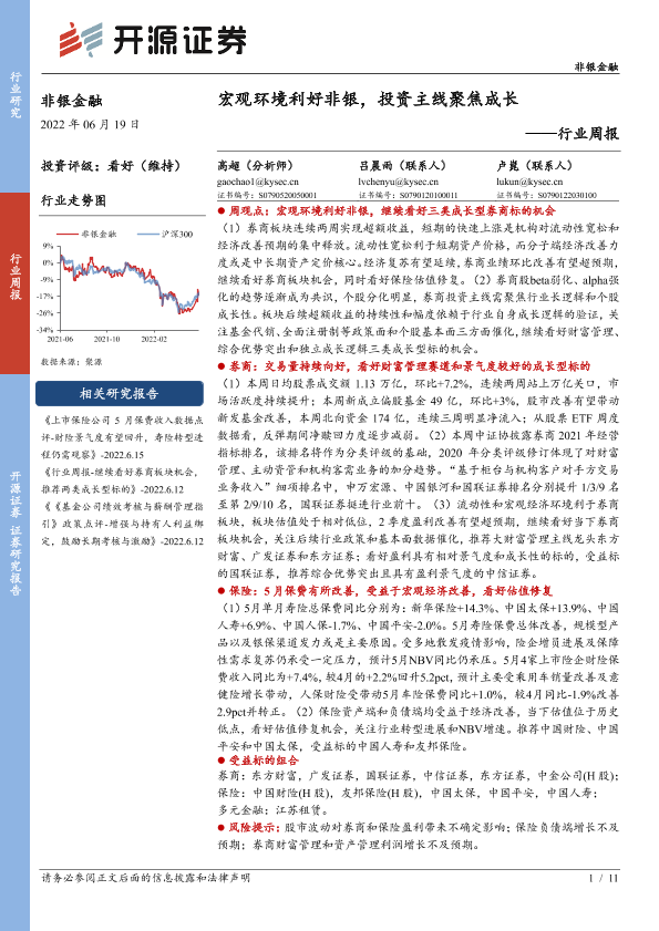 【开源证券】【20220619】非银金融行业周报:宏观环境利好非银,投资主线聚焦成长-11页
