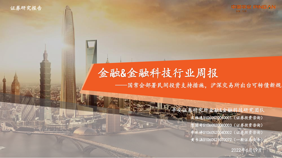 【平安证券】【20220619】金融&金融科技行业周报:国常会部署民间投资支持措施,沪深交易所出台可转债新规-17页