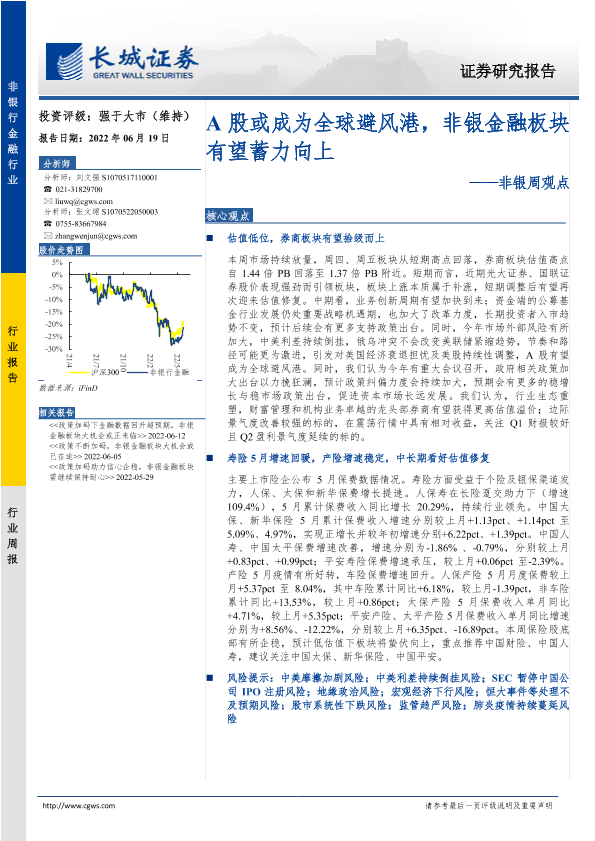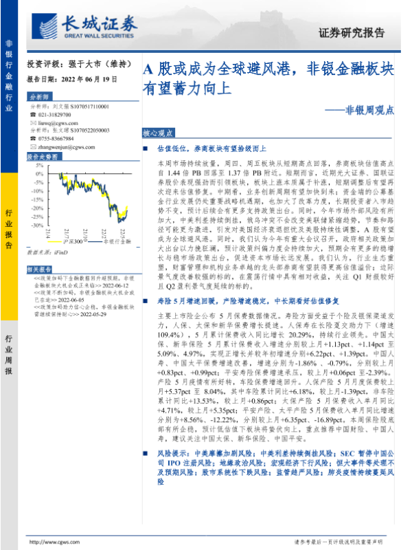 【长城证券】【20220619】非银周观点:A股或成为全球避风港,非银金融板块有望蓄力向上-33页