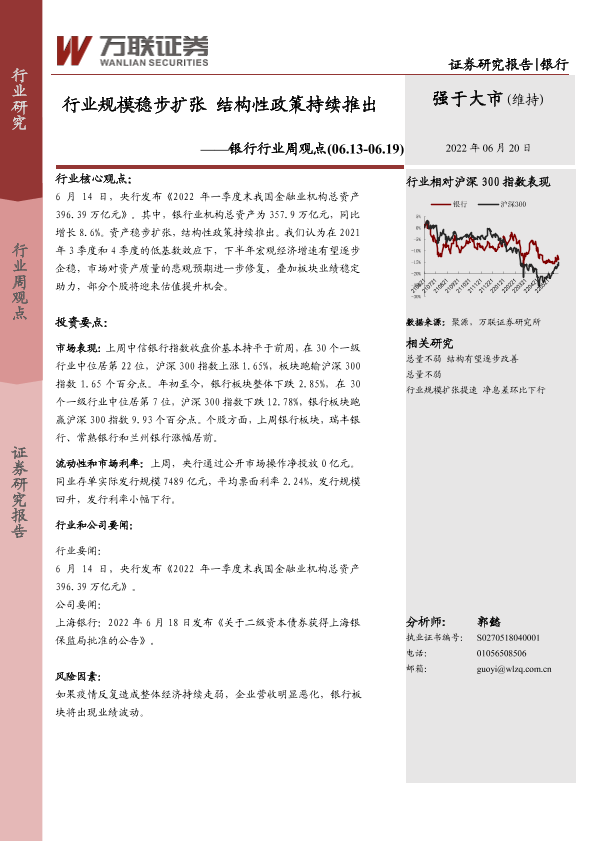 【万联证券】【20220620】银行行业周观点:行业规模稳步扩张 结构性政策持续推出-6页