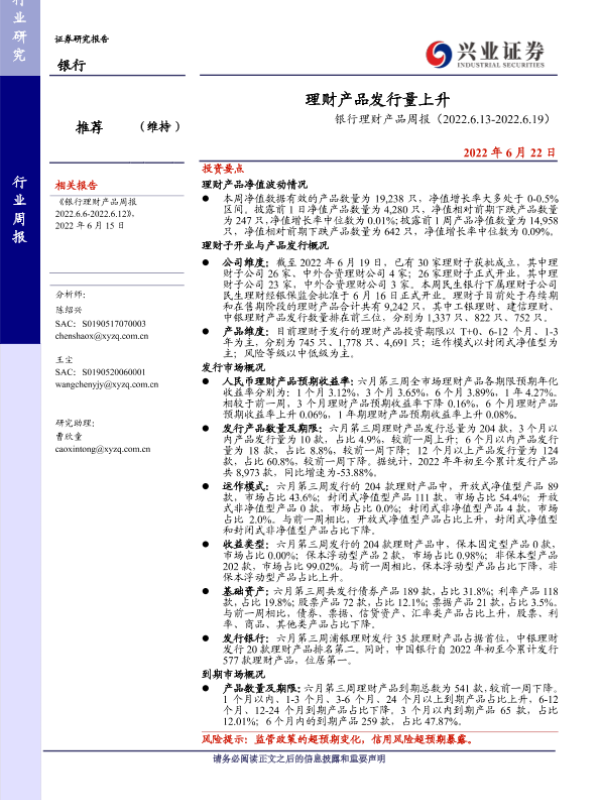 【兴业证券】【20220622】银行理财产品周报:理财产品发行量上升-19页
