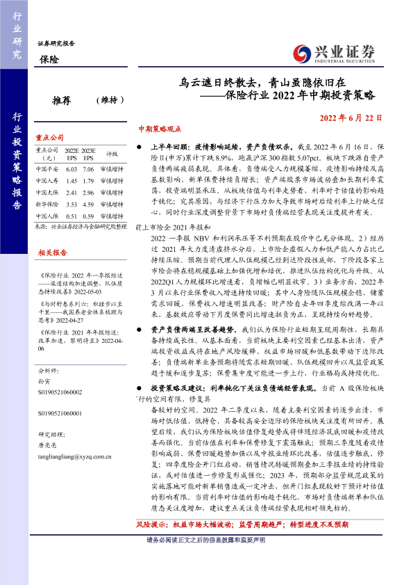 保险行业 市场展望 投资策略 疫情影响 资产负债分析