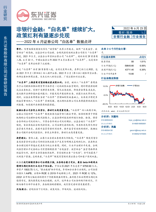政策红利 白名单 行业报告 证券公司 非银行金融