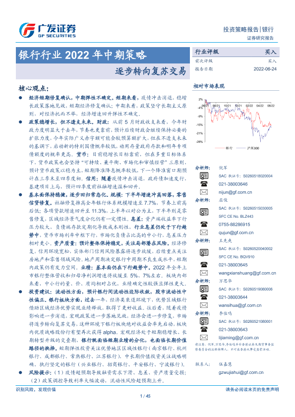 【广发证券】【20220624】银行行业2022年中期策略:逐步转向复苏交易-45页