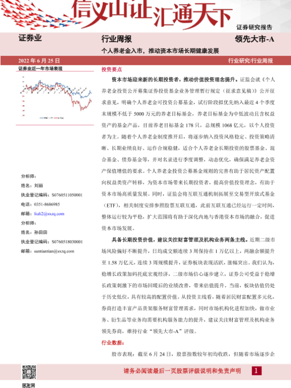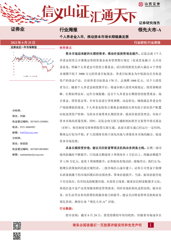 【山西证券】【20220625】证券业行业周报:个人养老金入市,推动资本市场长期健康发展-10页