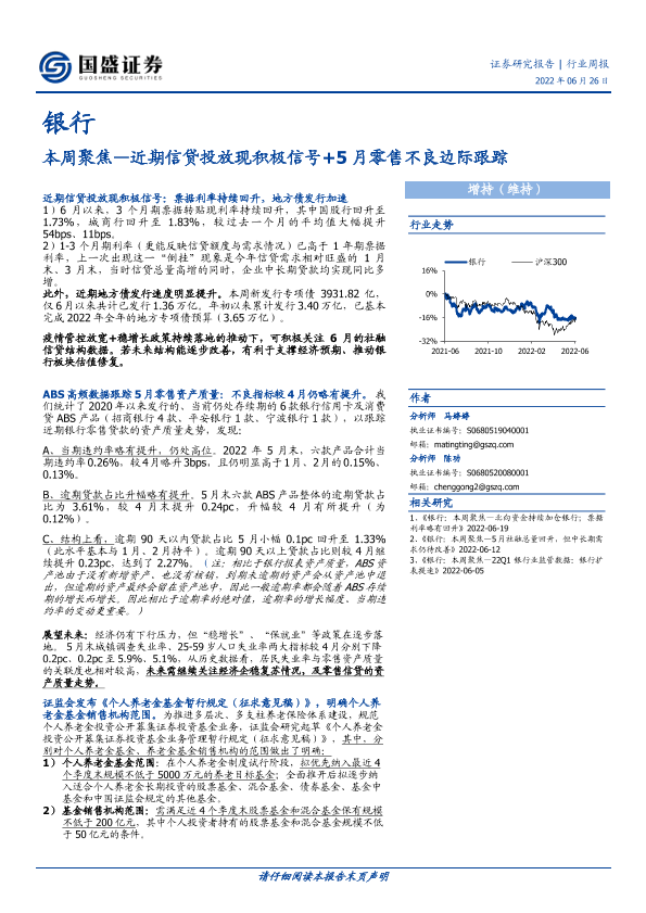 【国盛证券】【20220626】银行本周聚焦:近期信贷投放现积极信号+5月零售不良边际跟踪-14页