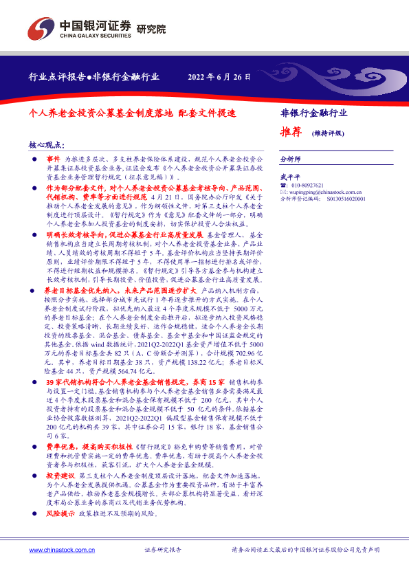 【银河证券】【20220626】个人养老金投资公募基金制度落地 配套文件提速-2页