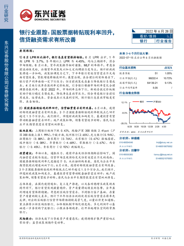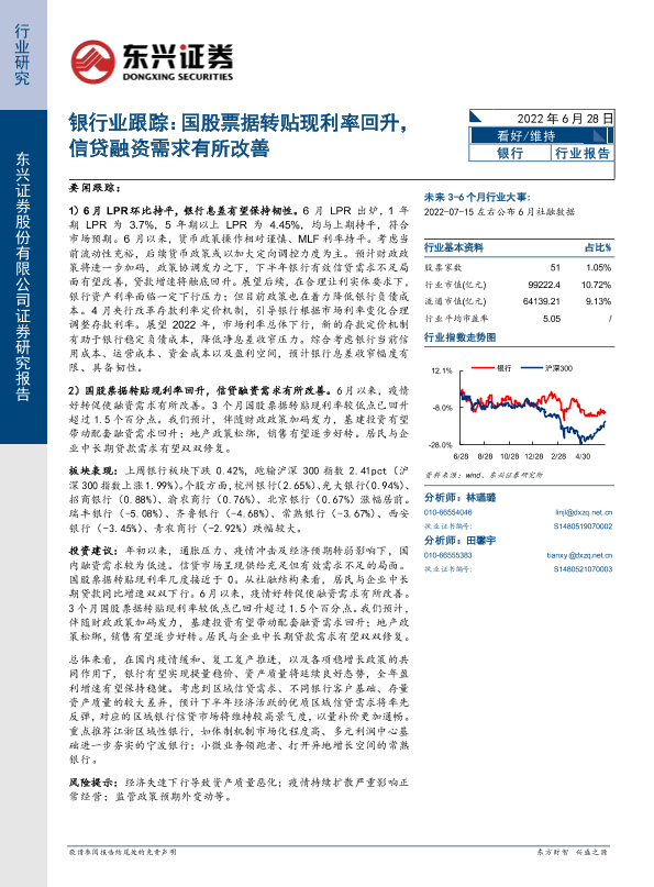 【东兴证券】【20220628】银行业跟踪:国股票据转贴现利率回升,信贷融资需求有所改善-10页