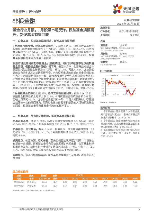 【天风证券】【20220630】5月股票市场反弹,权益基金规模回升、新发基金有望回暖-4页