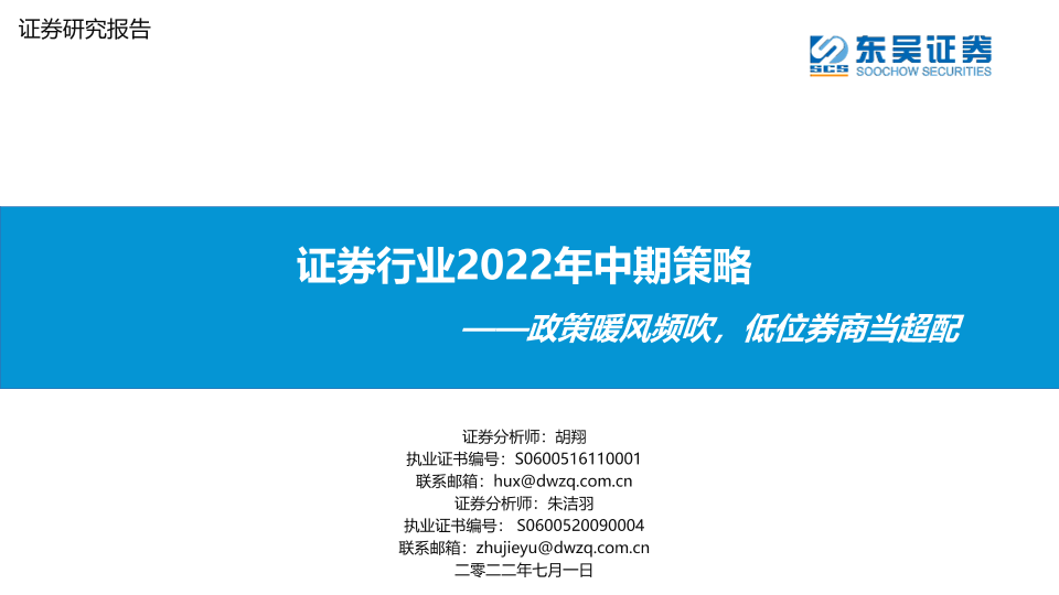 【东吴证券】【20220701】证券行业2022年中期策略——政策暖风频吹,低位券商当超配-21页